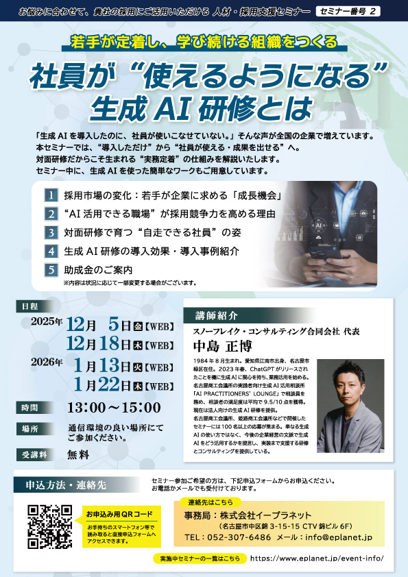 - 経営者様、人事採用担当者様に役立つセミナーを随時開催しています。